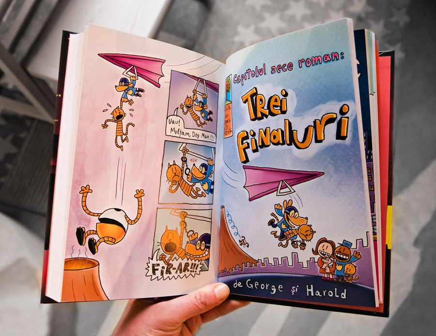 Rămâi pe frecvență pentru că în curând vom anunța un nou volum cu Dog Man: Dog Man și Super Pisoiul. Și o nouă carte cu Căpitanul Chilot: Căpitanul Chilot și Atacul Toaletelor Vorbitoare.