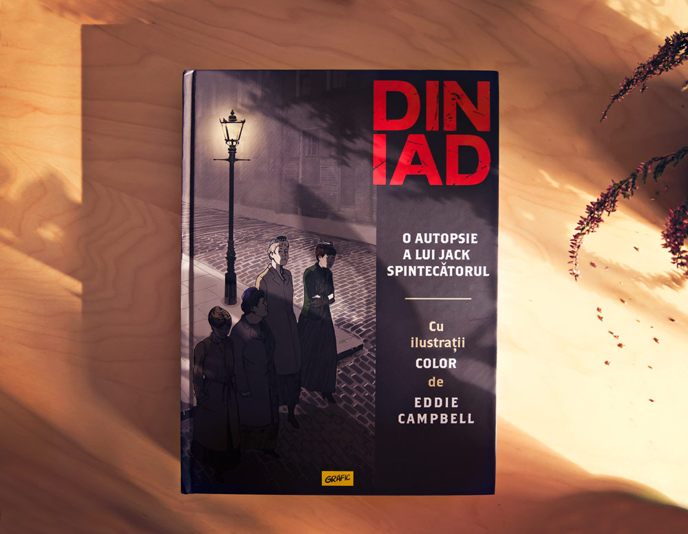 Apărut în foileton între 1989 și 1998, Din iad, scris de Alan Moore (pe care-l știți din Watchmen, V de la Vendetta sau, desigur, BATMAN. Gluma Ucigașă) și ilustrat de Eddie Campbell a fost editat și publicat în volum în 1999, dar abia în 2020 a apărut și varianta color. Romanul a inspirat filmul cu același nume, realizat de Albert și Allen Hughes în 2001. Deci dacă plotul vi se pare cât de cât cunoscut, poate i-ați văzut pe Johnny Depp și pe Ian Holm jucându-i pe inspectorul Frederick Abberline, respectiv pe William Gull.