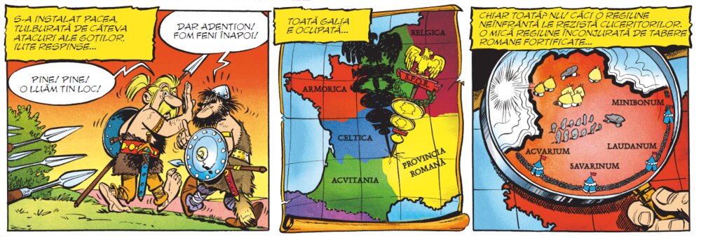 Suntem în Galia anului 50 î.H. pe lângă singurul sătuc care reușește să se împotrivească legiunilor romane. Pentru a afla care-i taina care protejează barbarii de legiunile lui Cezar, centurionul Caius Bonus trimite un spion să se infiltreze în așezarea nu deosebit de bine fortificată. Acolo îi descoperă, și odată cu el și cititorul, pe Asterix, pe Obelix, pe bardul Cacofonix, pe șeful Brațscurturix, pe druidul Panoramix și, mai ales, află de licoarea pe care acesta din urmă o prepară pentru a oferi putere galilor.