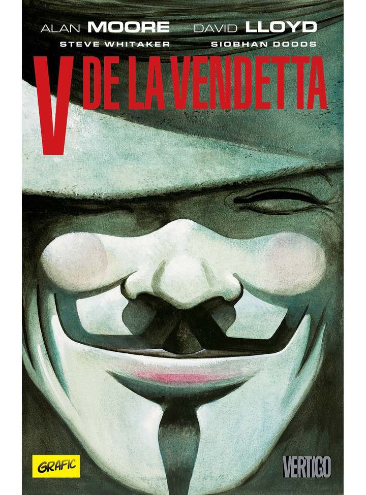 Cunoscută și popularizată mulțumită filmului de care scenaristul s-a dezis, V de la Vendetta nu doar că a stat mulți ani într-un con de umbră, dar nici măcar nu a fost publicată integral până în 1989. Banda desenată a debutat ca foileton în magazinul britanic Warrior și a fost întreruptă în 1985, când revista a dat faliment. Fiecare fascicul era de trei sau patru ori mai scurt decât un număr de bandă desenată americană, iar David Lloyd a realizat-o în alb-negru, într-un clar-obscur extrem. Seria a fost reluată abia în 1988 de către DC, reeditată în culoare și într-un final completată, după ce Moore s-a remarcat pe țărmurile nord-americane cu Watchmen și Saga of the Swamp Thing.