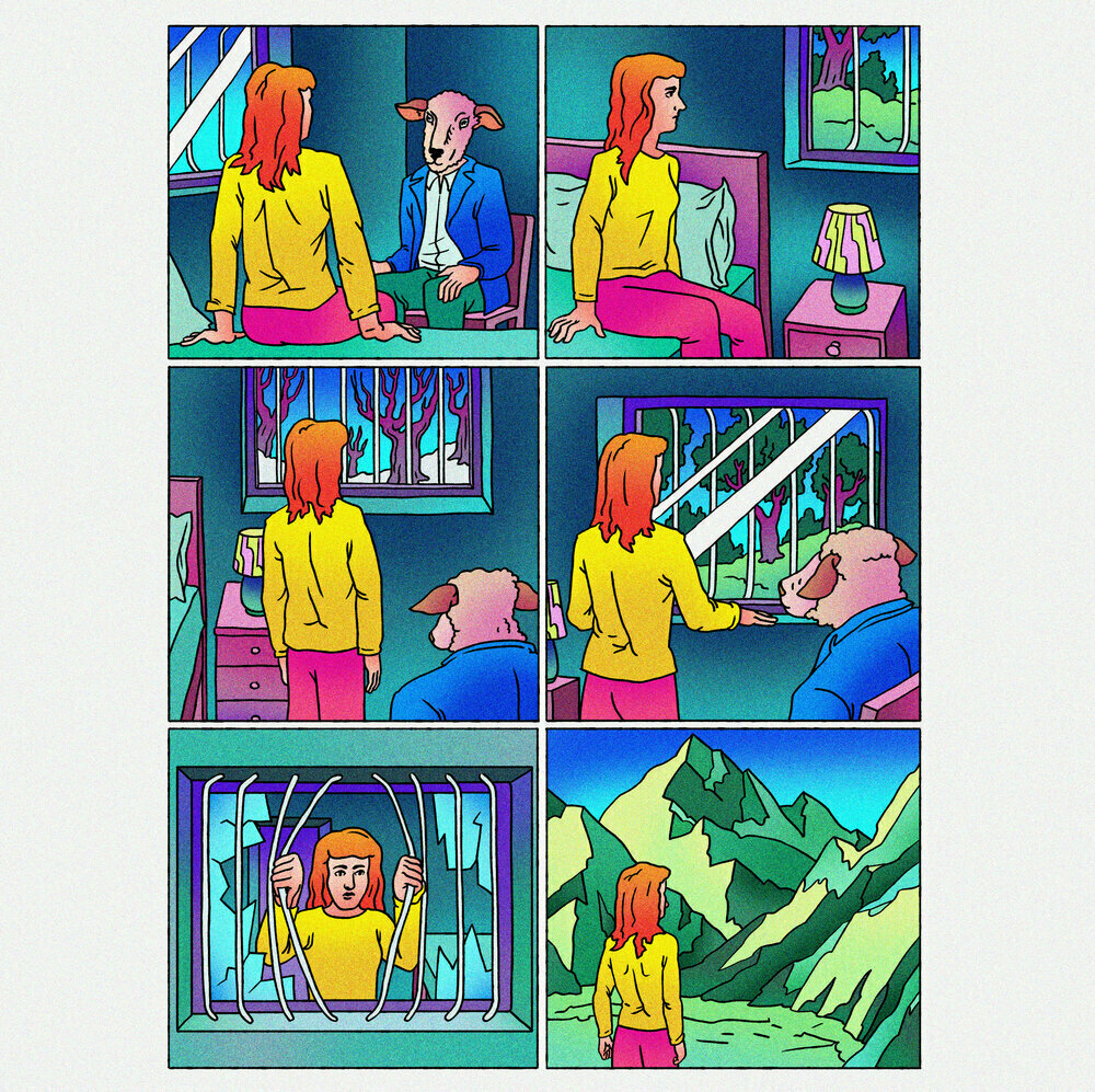 M-am trezit înainte de răsărit, în camera încă întunecată, iar în timp ce mă ridicam în capul oaselor, pe scaunul din fața mea am observat silueta Domnului Oaie (un personaj dintr-o carte citită recent și care probabil mă marcase, In cautarea oii fantastice, care are inclusă o schiță simpatică cu el șezând pe un fotoliu). Îmi iau privirea de la el și când mă uit înspre geam, observ anotimpurile succedându-se în viteză, unul după altul, ca într-un caleidoscop al timpului. Mă ridic și mă duc înspre fereastră, și deși avea gratii prin care nu puteam trece, contraintuitiv, mă fac din ce în ce mai mare și trec prin ele. Ajung însă în alt loc — văd un peisaj de munte, în mijlocul nimicului. Îmi dau seama că tocmai am ieșit din demisolul Hotelului Delfin (un loc mentionat în cartea Dans Dans Dans, care este continuarea celei menționate anterior) iar visul se termină cu imaginea acelei clădiri înconjurată doar de natură și liniște completă.